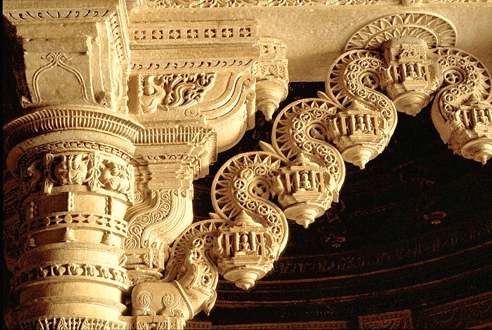 パールシュヴァナータ寺院の、柱頭とトラナ・アーチ詳細