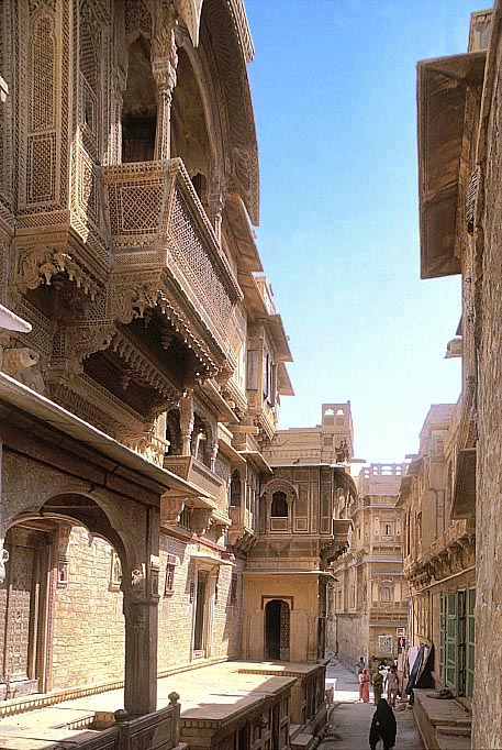 信じがたいほどの密度でファサードが彫刻された石造の家々が建ち並ぶ。