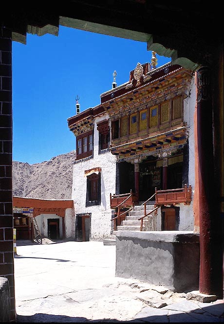 リキール・ゴンパの 門から前庭をとおして ドゥカンを見る。