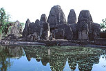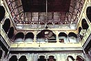 センジのテオッグ国王宮と、内部吹き抜け見上げ もう一つの融合のしかたは、センジのテオッグ国王宮に見られるような、建物の下層を堅固な石造とし、上層を軽い木造とする方法である。これも耐震性には有効であるが、こうした大きな建物は あまり残っていない。この王宮は 本来祭礼のための施設であったというが、内部の吹き抜け大ホールを囲む空間構成は なかなか魅力的である。 |