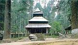ビアス川流域の一番奥にある マナーリの町から山へ分け入ると、ドゥーングリ村の 森厳なヒマラヤ杉の森の中に ヒディンバー・デヴィー寺院 がある。これはバハドゥール・シング王による 1533年の建立と伝えられ、高さ 24メートルの木造の屋根が架けられている。3層の方形屋根の上に 円錐形の屋根が頂部に載っているが、今はトタンに替えられてしまったこの円錐屋根は、後世に加えられたものではなかろうか。