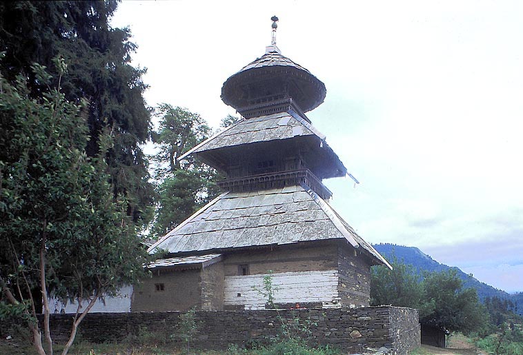 木造の三重塔のトリユギナラヤン寺院、ディヤル