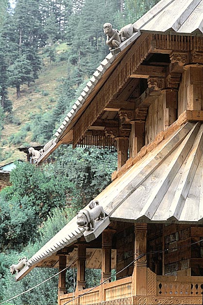 トリプラスンダリー寺院の 木造屋根と彫刻(猿とライオン)、ナガル