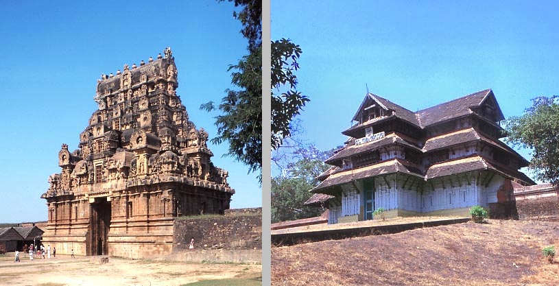 左:タミルナードゥ州の ゴプラ(タンジャーヴールの ブリハディーシュワラ寺院)