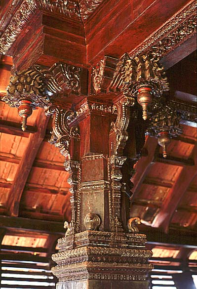 タイコッタラム(王母の館)における 独立柱の柱頭、パドマナーバプラム宮殿