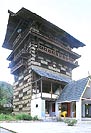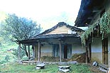 パングナのドゥルガー寺院は前面にスレート葺きの下屋とポーチが増築されて、やや表情を変えているが、みごとな角塔本体は、反りのついた切妻屋根もバルコニーもオリジナルのままである。案内してくれた医師と、鍵をあけにきてくれたプージャーリ(僧)の話では、ほぼ 300年前の建設だという。 |