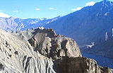 さて、マンディへと走り続けた夕方、その日の損失を埋め合わせるように、思わぬ拾い物をした。チンディを過ぎたあたりで、ふいに丘状の町が遠くに現れ、その頂部に寺院塔が建っているのである。今までどんな本にも情報のなかった寺院なので、すでに夕闇の迫る中、大急ぎでこのパングナの町へ寄ってみた。