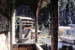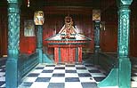 ティーリの寺院は、近年修復された時に 木部が塗装されてしまったが、頂部の円錐屋根は 昔ながらに木の板で葺かれている。かつては すべてが木であったが、今では 下の2層はスレート葺きである。珍しいのは 堂の手前に一段低く、回廊で囲まれた前庭を付していることで、これが半外部のエントランス・ホールになっている。