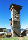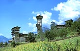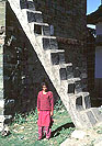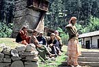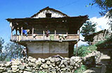 標高 2,000mの山上の チャイニ村(チェニとも発音する)へは、朝の8時にマンディを出発して、車で行けるところから さらに1時間のトレッキング、昼の 12時に 念願の再訪を果たすことができた。ここには 村の広場をへだてて もう1本の角塔が建ち、反対側には5階建てのクリシュナ寺院もあり、伝統を乱す要素は何もない。純朴で親切な村人たちの住むこの村は、まさに現代の 桃源郷 である。
