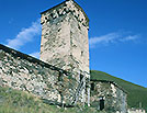 こうした角塔型寺院の原型は 民家にあると考えられる。 チャイニ村の民家を見ると、壁面は塗装されているものの 伝統的なカトクニの構造であり、1階は家畜小屋、2階が居住部で、その周囲のバルコニーが廊下であり、物干し場でもあり、雨季の作業場、日向ぼっこをする場所でもある。そして3階の屋根裏に 台所と物置がある。火種を絶やさないためか、竈(かまど)には いつも火がおこされていて、その煙が入母屋の妻部分の窓から排出されるのである。
