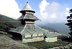 ヒマーチャル・プラデシュ州は すべて山の中である。下界のインド平原のような乾燥地ではなく、山々は ヒマラヤ杉や樅(もみ)、そして松の緑に覆われているから、木材は豊富に産する。したがって古来、家々は木造で建てられてきた。