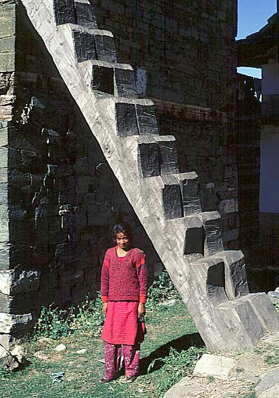 ヨーギニー寺院の屋外階段の下に立つ少女から、スケールがわかる。