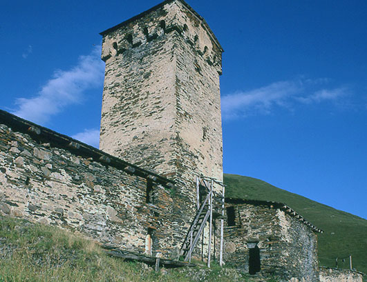 スワネティ地方の ウシュグリ村、チャザシ集落の民家