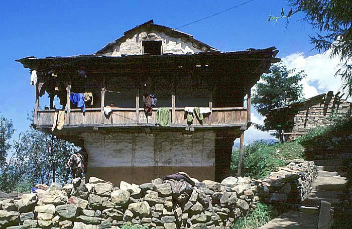 チャイニ村の典型的な入母屋造りの民家