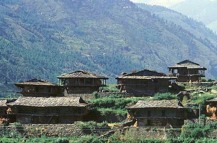 ナガルの近くにあるカイス村の、入母屋造りの古い住居集落