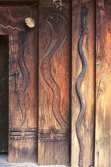 ガウタム・リシ寺院の脇の小堂、扉口の右側のナーガ彫刻、ゴシャル