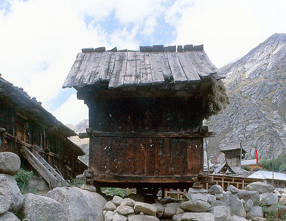 チトクル村の穀物倉の下部詳細