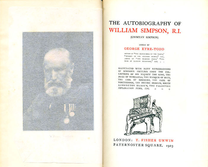 THE AUTOBIOGRAPHY OF WILLIAM SIMPSON, R. I. (Crimean Simpson) George Eyre-Todd (ed.), 1903, T. Fisher Unwin, London
