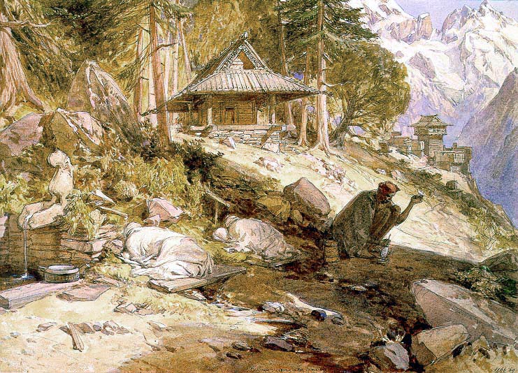 ヒマラヤの戸外で眠る子等、ウィリアム・シンプスン画、1864年