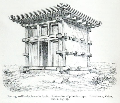 356ページの図版 「家形墓の復元図」。 オットー・ベンドルフ(Otto Benndorf)著の