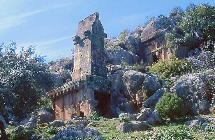 スラに残る石棺墓と家形石窟墓、前4世紀、リュキア