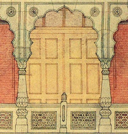 ヨーロッパの影響を受けた 近世の西インドのラージプート宮殿で多用されたが、