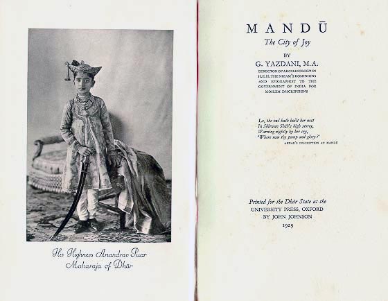 『マンドゥ、歓喜の都』G・ヤズダニ著、1929年、ダール藩王国、扉 "MANDU, The City of Joy" : G. Yazdani, 1929, Dhar State, title page