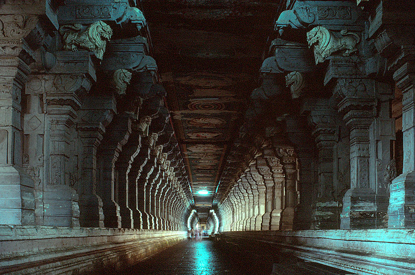 南インドのドラヴィダ建築:ラーメシュワラムにあるラーマリンゲーシュヴァラ寺院の大回廊(17世紀)