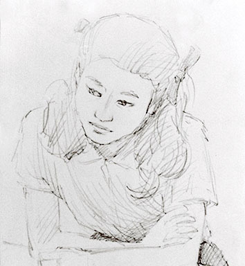 高校時代の鉛筆スケッチ「女生徒」 1964