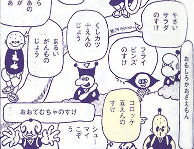 食事はと言うと、もちろん「ぶっかけご飯」です。犬は 人間と同じものを食べるものだと 誰もが思っていたので、考える余地もなく、毎日 我々が ご飯と 味噌汁と 漬け物で 食事をしていたように、タロにも、ご飯に みそ汁をかけた「ぶっかけご飯」を あげたのです(多分 漬け物も添えて)。当時「ドッグフード」などというものは 知られていなかったので、見たことも ありませんでした。もし見たら、あんな形をした 丸薬(がんやく)みたいな物が、犬の食べ物だとは 信じられなかった ことでしょう。 当時、庶民が犬を飼うと言えば、それは雑種犬であり、外飼いにするのが普通でした。「上流階級 (?) 」の家だけが「白いスピッツ」などを飼って 得意になっていましたから、あるいは スピッツたちは「ドッグフード」を 食べていたのかも しれませんが。 ご飯には「おかず」が付きましたから、その余りものを、タロの「ぶっかけご飯」にも トッピンッグとして 付けたことでしょう。当時の 最もポピュラーな「おかず」は「コロッケ」でした。コロッケは 日本全国 どこでも、1枚5円です。私が好きだった漫画家・杉浦茂の『猿飛佐助』には、「コロッケ五円之助」という忍術使い (?) が出てくるほどです。
