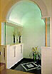 水盤(噴泉)から溢れ落ちる水の音が回廊の巡る中庭に反響する。「人生には辛いこと、寂しいことがたくさんある。外界から切り離された中庭のベンチに腰掛け、ひとり静かに水音に耳を傾けていれば、落ち込んだ心も癒されるのではないだろうか」。