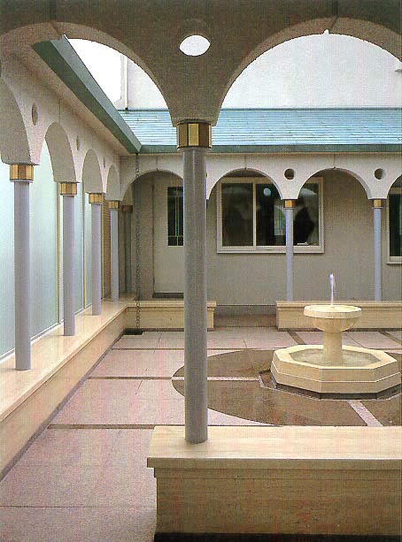 三方を回廊で囲まれた中庭の中央に 大理石の水盤があり、
