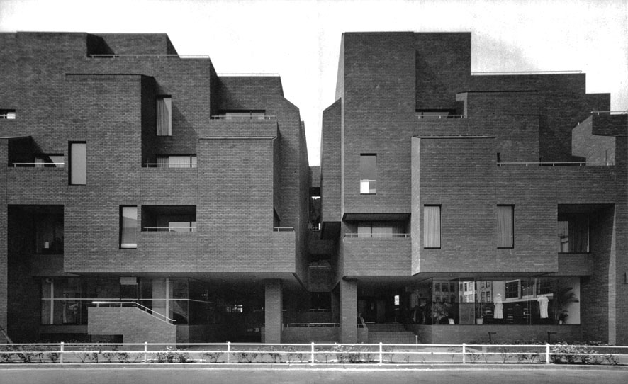 フロム・ファースト・ビルの前面道路側、オープン直前の外観(『新建築』1976年6月号 より ) 中央が、東棟と西棟とのエクスパンション・ジョイント。 店舗階はサッシュレスの スティフナー・ガラス・スクリーンとした(向かいの小学校が映っている)。 プロデュースをした浜野安宏氏の招致活動によって、「イッセイ ミヤケ1号店」を はじめとする、多くのファッション店が入居することになる。