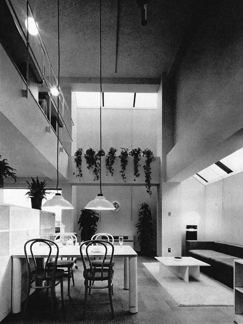 フロム・ファースト・ビル、4-5階の住居・オフィス、モデルルーム(撮影:門馬金昭) 企画時の浜野安宏氏の考えは、青山に住むデザイナーや弁護士や文筆家など、 仕事場と住居を一緒にしている 自由業の人たちの 活動の場を作ることだった。
