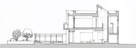 所在地:神奈川県平塚市夕陽ヶ丘 / 設計・監理:神谷武夫建築研究所 / 設計期間:2000年3月〜9月 / 構造:須賀設計事務所 / 設備:三共設備設計事務所 / 電気:山崎設備設計事務所 / 工事期間:2000年10月〜2001年6月 / 施工:馬渕建設 / 鉄筋コンクリート造2階建 / 敷地面積:220u / 延床面積:174u / 写真撮影: 斎部功 / 受賞:第47回 神奈川建築コンクール 住宅部門 奨励賞