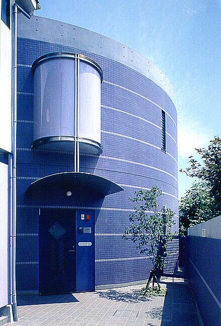 敷地の道路側に既存家屋があるので、玄関へのアプローチが唯一の外観である。