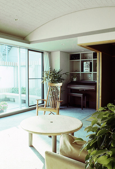 居間 左手にパティオ、右手に和室