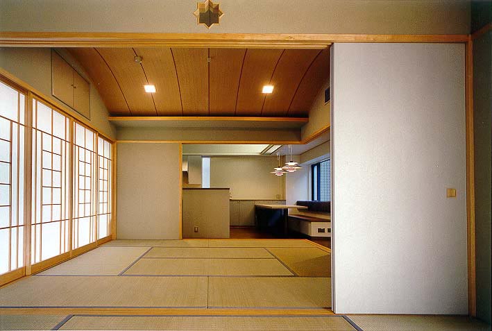 3階住居の和室のつらなりから食堂を見る