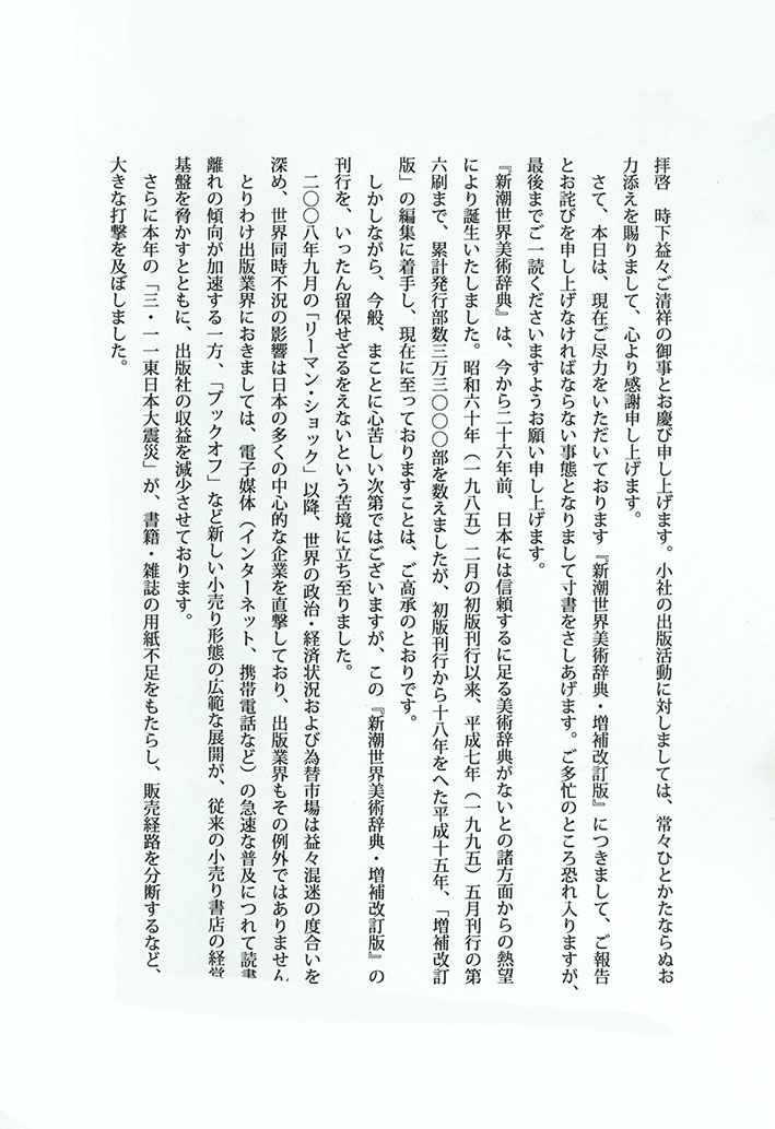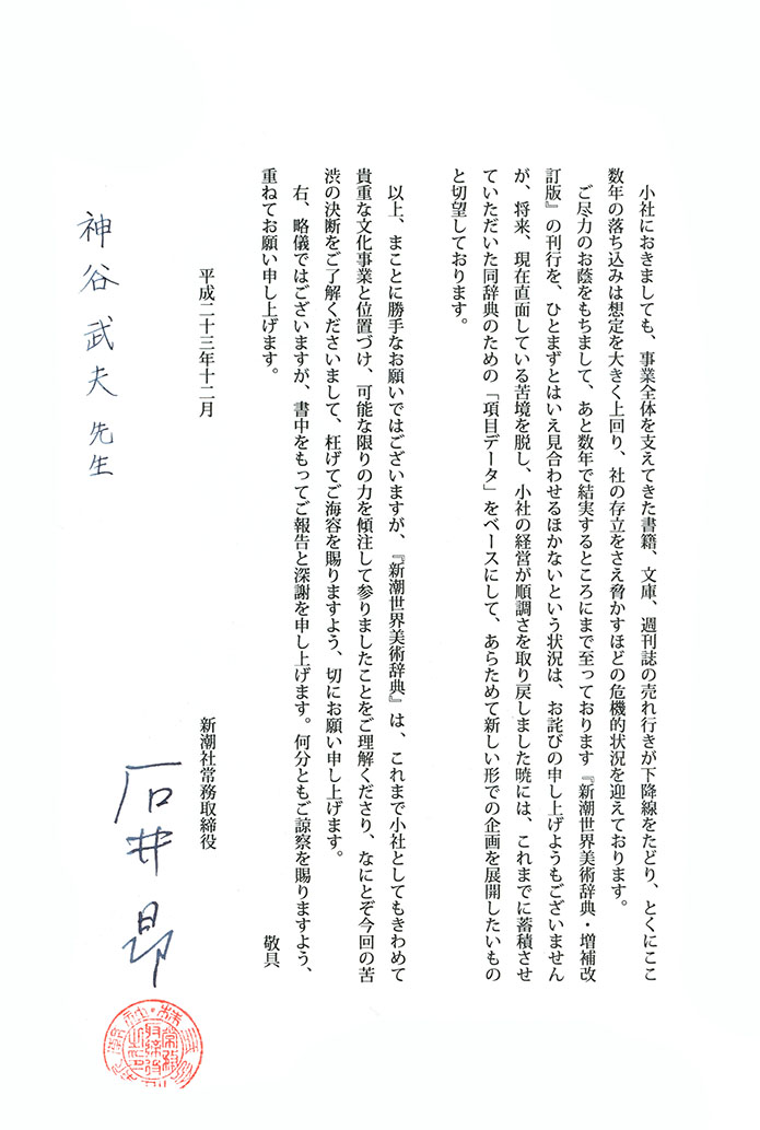 下は、2011年(平成23)に 新潮社から来た「出版留保」の通知ですが、