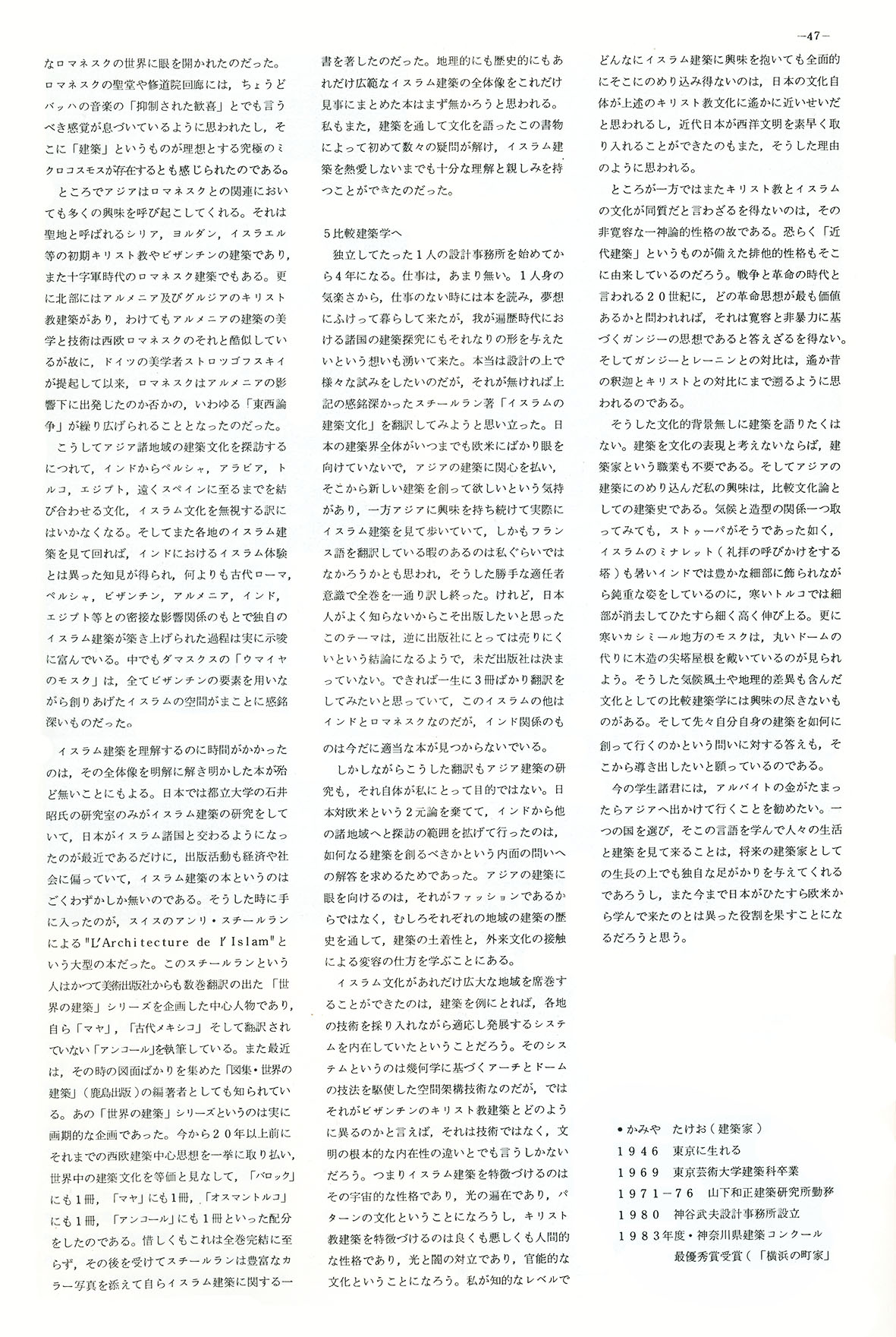 東京芸術大学 建築科 学生機関誌 『 空間 』 第7号 1984年 特集 「 アジア 」 44〜47ページ 「 アジア建築への視点 」 神谷武夫