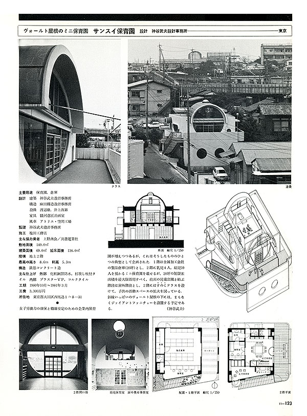 この建物は、『神谷武夫の建築作品』のサイトにおいて 『 サンスイ保育園 』として 掲載してありますので、 ここをクリック して ご覧ください。