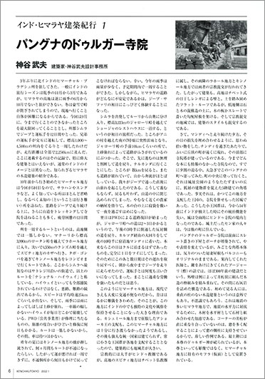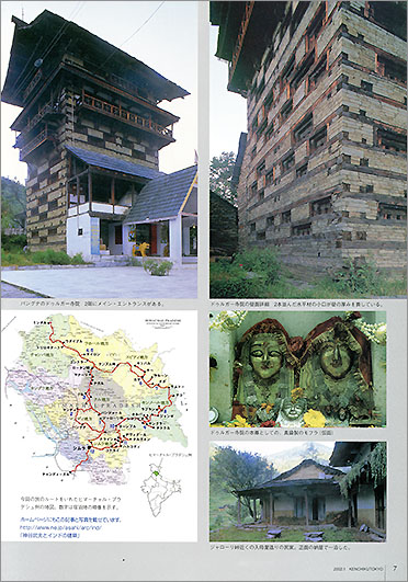 ● 東京建築士会の機関誌『 建築東京 』に、山下事務所で同僚だった紫冨田(しぶた)さんの紹介で 2002年1月号から半年間、「インド・ヒマラヤ建築紀行」として、ヒマーチャル・プラデシュ州の木造建築について連載しました。見開き2ページに限定されたので、やや ぎゅう詰めのレイアウトです。左ページに文章、右ページに写真を載せ、毎号 きっちりと同じ文字数の原稿を書きました。
