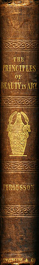 ジェイムズ・ファーガスンの『歴史的探究』の背と表紙 (1855)
