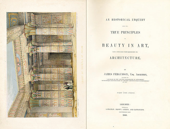 ジェイムズ・ファーガスンの『歴史的探究』初版、扉ページと、