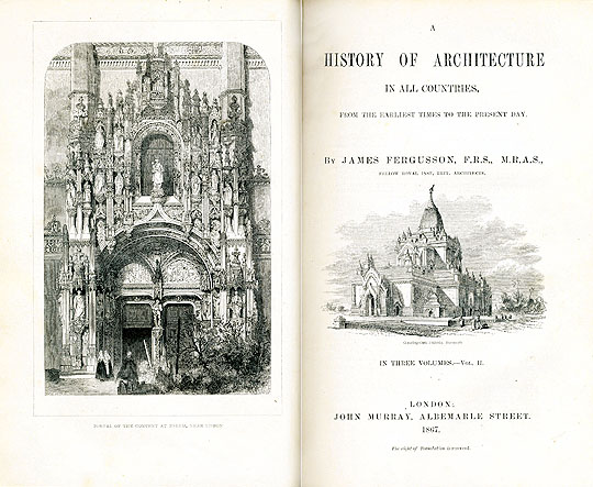 ジェイムズ・ファーガスンの『世界建築史』初版、下巻 (1867)。