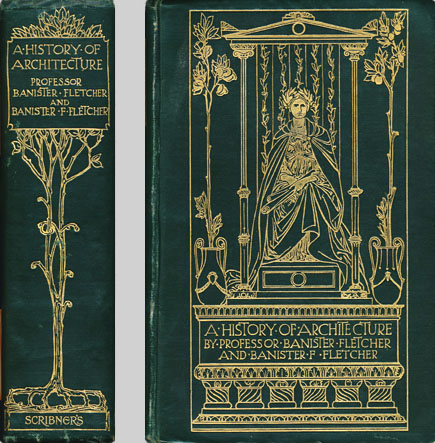 バニスター・フレッチャーの『フレッチャー建築史』第5版の背と表紙 (1905)。