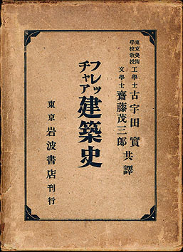 『フレッチャア建築史』の邦訳版は 函に入っていた。本を入れる側も蓋のようになっているので、本体の日焼けを防いだ。天金や装幀も含め、かなりの豪華本だった(定価は 8円50銭)(当時の小学校教員の初任給が、12〜20円だったという)