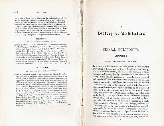 『フリーマン建築史』序論の扉ページ。 左は目次の最終ページ。