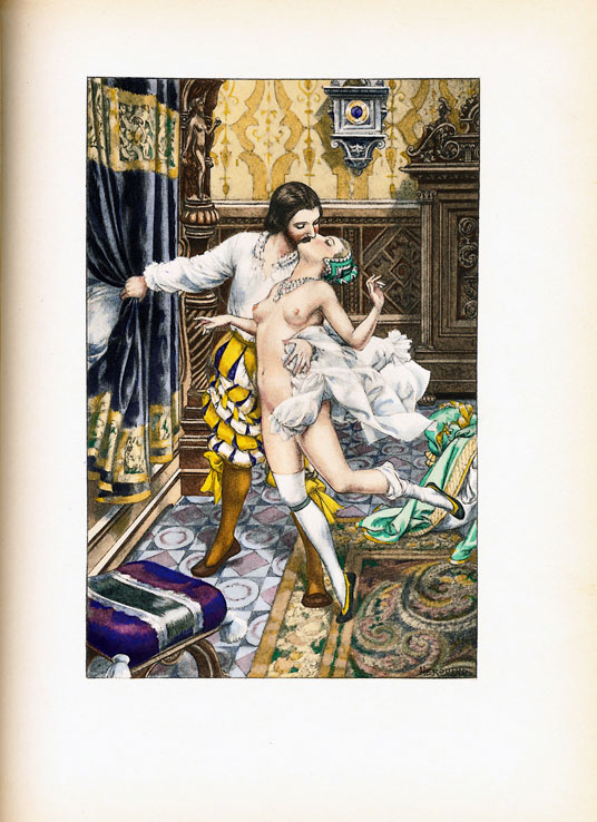 ナヴァール王妃 マルグリットの『エプタメロン』(1932)、第1日、第 10話 シェリ・エルアールの挿絵(ポシュワール)18cm × 11.5cm 第10話は 62ページもある長い話で、挿絵が4点も添えられている。