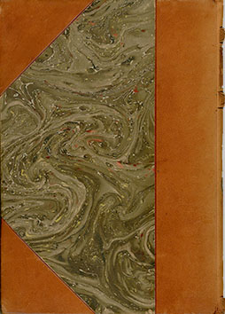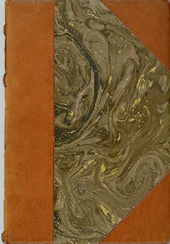 後に 革装本を見つけて 購入した。茶色のシャグラン革のハーフ・レザー、平はマーブル紙。